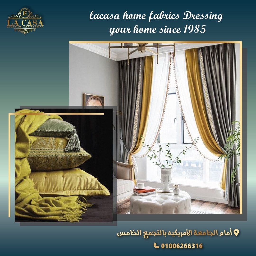 وايضا فى Lacasa مجموعة فريدة من اقمشة الستاير والمفروشات المصرى والمستورد مثل