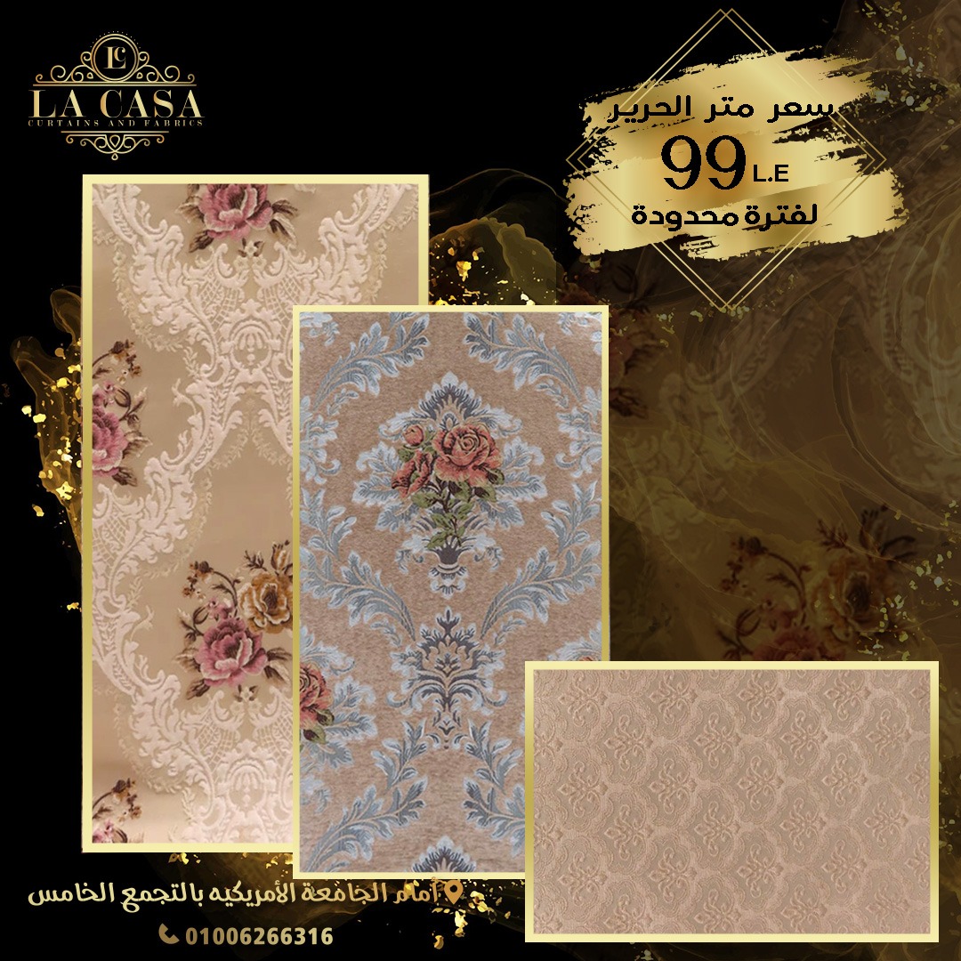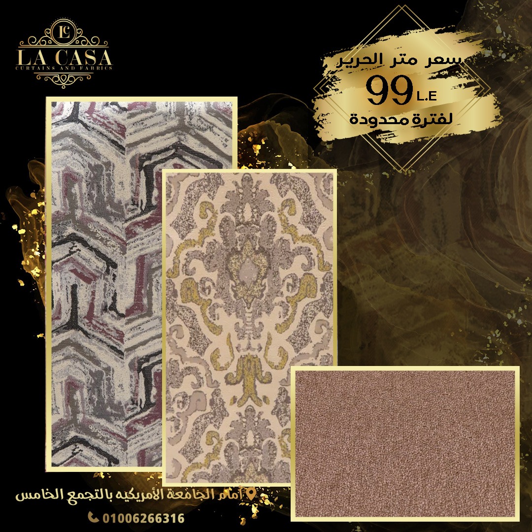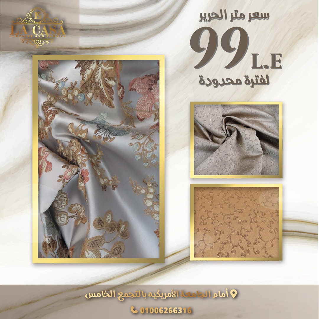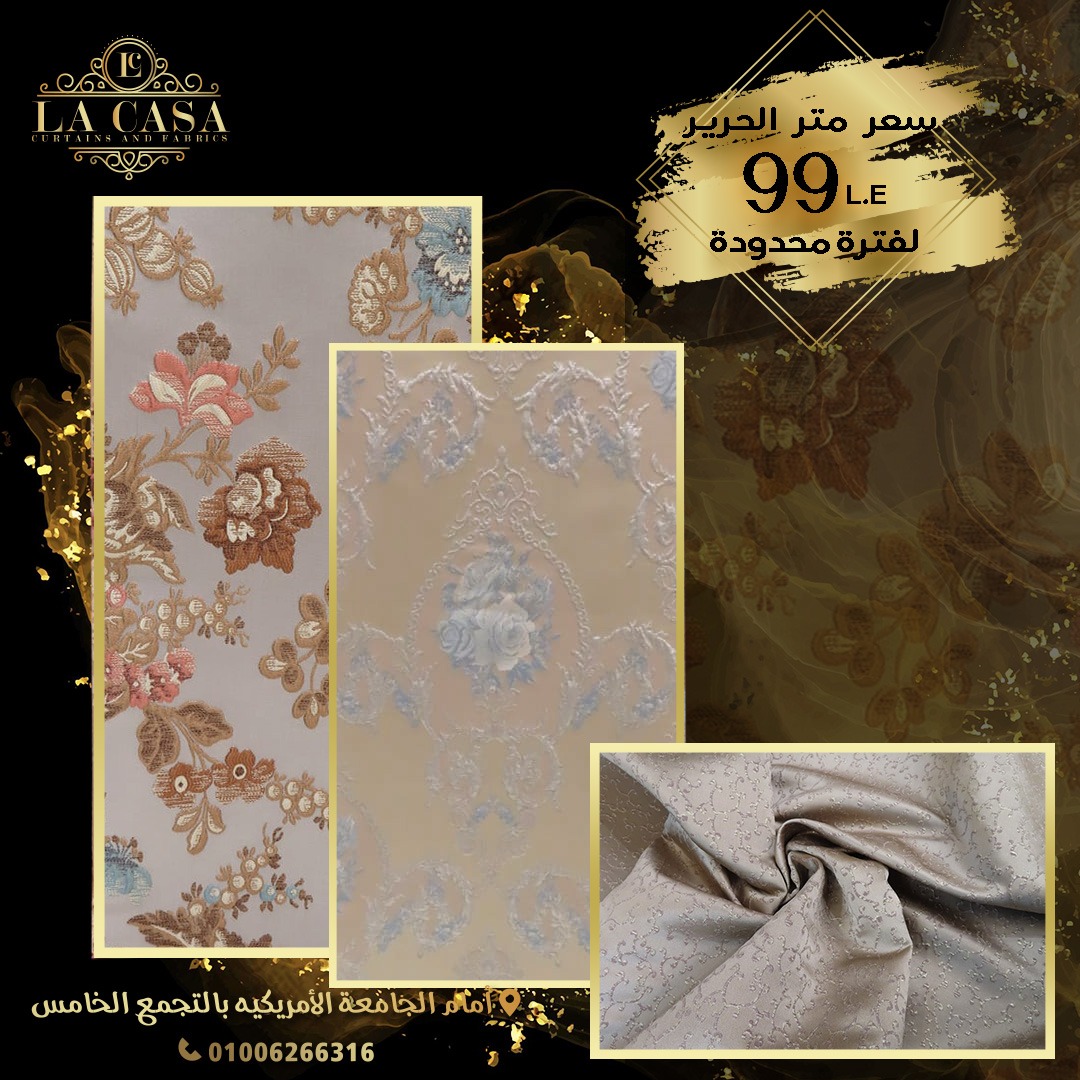 مجموعة فريدة من اقمشة الستاير والمفروشات المصرى والمستورد ،،،،،،،،، مثل ( الحرير والقطيفة والبلاك اوت والشيفون والتل المطرز والجلد المستورد )